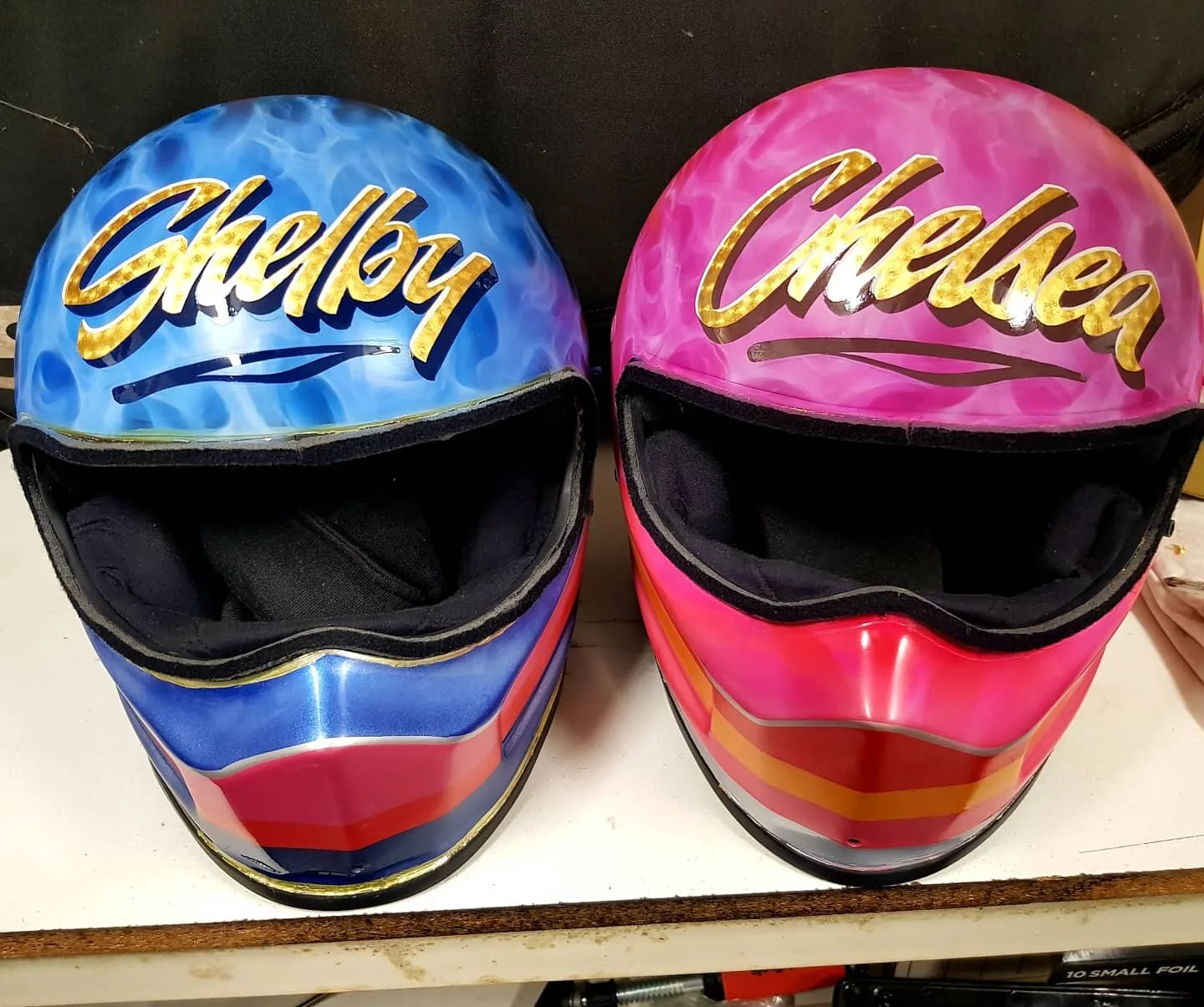 Jeff from Marshall Artz is passionate about all the specialized services that he offers, but none more so than the traditional methods of hand painting. Although this skill has been appreciated for a very long time, this art form has regained popularity over the last few years especially within the kustom kulture scene. Bike and skate helmets, wall hangings, along with naming vehicles etc creates an original personalized look which is quite rare in this modern day of computer technology. The photos below show Jeff's distinctive script lettering, complimenting colour schemes and original artworks.